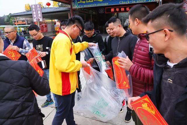 沈先生带领着公司的同事驱车前来观音山进行团建登山活动。在收到工作人员赠送的“新年福氧”后,大有感慨地说,“我们平时都生活在城区,很少有锻炼的机会,虽然平时也有在健身房里健身,但也无法接触到大自然的清新空气,特意驱车前来观音山登高赏景。很幸运能领到观音山清新的森林空气,这样我们不仅可以在观音山吸收负氧离子,还能把新鲜空气带回家。”说完,还向工作人员竖起了大拇指。