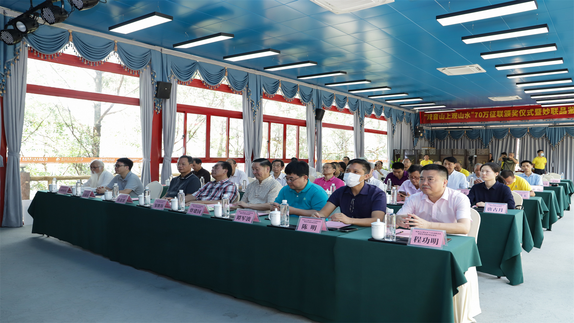 为寻求最佳下联,以壮观音山景区山门,2019年11月7日由广东楹联学会与广东观音山国家森林公园共同推出70万征集“观音山上观山水”最佳下联活动。本次征联活动面向全球展开,一经推出,受到广泛关注和投稿参与。中国楹联学会会长助理、广东楹联学会会长曾建国在会上公布了评审结果,并介绍到:历时近14个月,征联活动于2020年12月31日24:00截稿,征联组委会两个投稿邮箱共收到稿件为:161713句。在监督员、媒体代表和法律顾问的监督见证下,评审委坚持三公原则,按《联律通则》和征联启事的要求,经过初评、复评、终评,参考网评结果,并经过公示,最终评选出15句较为优秀的下联;遗憾的是,未能评出“最佳下联”。颁奖仪式现场,来自江西、河北的获奖代表不远千里赶来领奖,中国楹联学会顾委副主任、中国楹联学会原副会长、中国楹联界最高奖项“梁章钜奖”获得者、本次征联组委会主任邹继海,与广东观音山国家森林公园董事长黄淦波共同给获得优秀奖代表颁奖。
