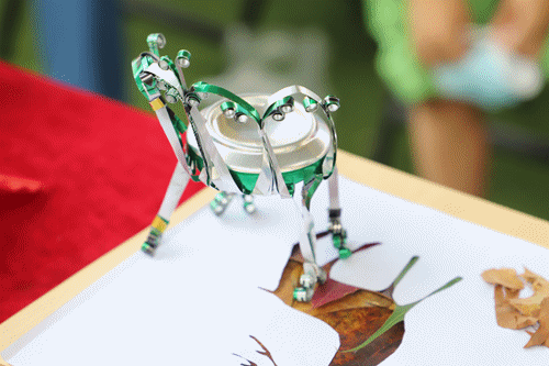利用透明胶带将废报纸粘成一条能够容纳队伍人数的圆环,游戏者在圆环内脚踩在纸上前进,前两个先到达终点的小组获胜,获胜组能得到小奖品。通过二次利用废旧报纸,让孩子们了解到合作的力量,加深居民之间的互相了解,游戏结束后让家长们叠好废旧报纸,并交给工作人员回收,言传身教。