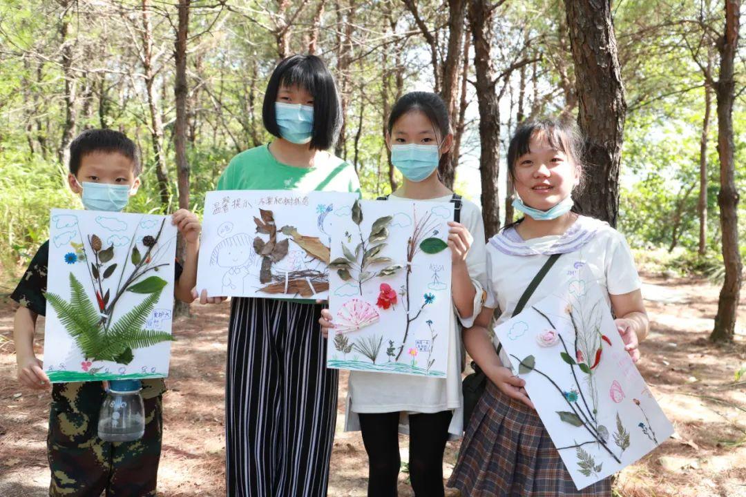 工作人员还准备了在观音山的自然森林中收集了各种植物的落叶,引导家长孩子们共同动手,以落叶为原材料,制作拼贴画。