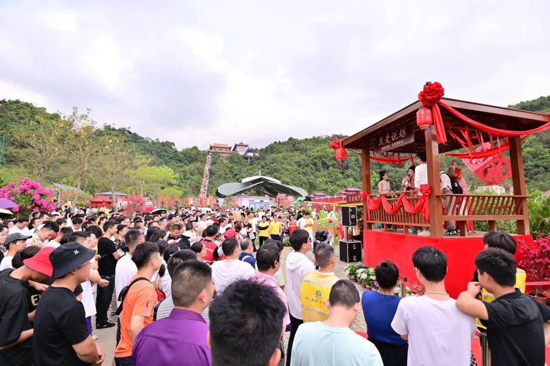 一位自湖南的单身游客罗小姐,美丽大方、有钱有颜,今天与家人自驾到观音山旅游。恰好遇上观音山月老说媒互动,她在家人的助攻下勇敢上台展示。一上台便受到在场广大单身男士的青睐,其中有三位男士更是勇敢上台表白。巧合的是一位来自江西的胡先生,也在同在广州自主创业,大胆表白女生,要一起回广州。另外还有一位来自云南的00后的小帅哥,也勇敢上台表示年龄不是问题 。最后一位是来自甘肃的高先生。经过了简单的了解,罗小姐选择了同在广州的胡先生,并互相加微信,月老也为两位有缘人系上寓意幸福美满的红绳。