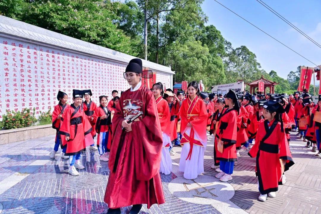 △ 学生们穿汉服,摸金鳌,敲状元鼓,体验状元文化