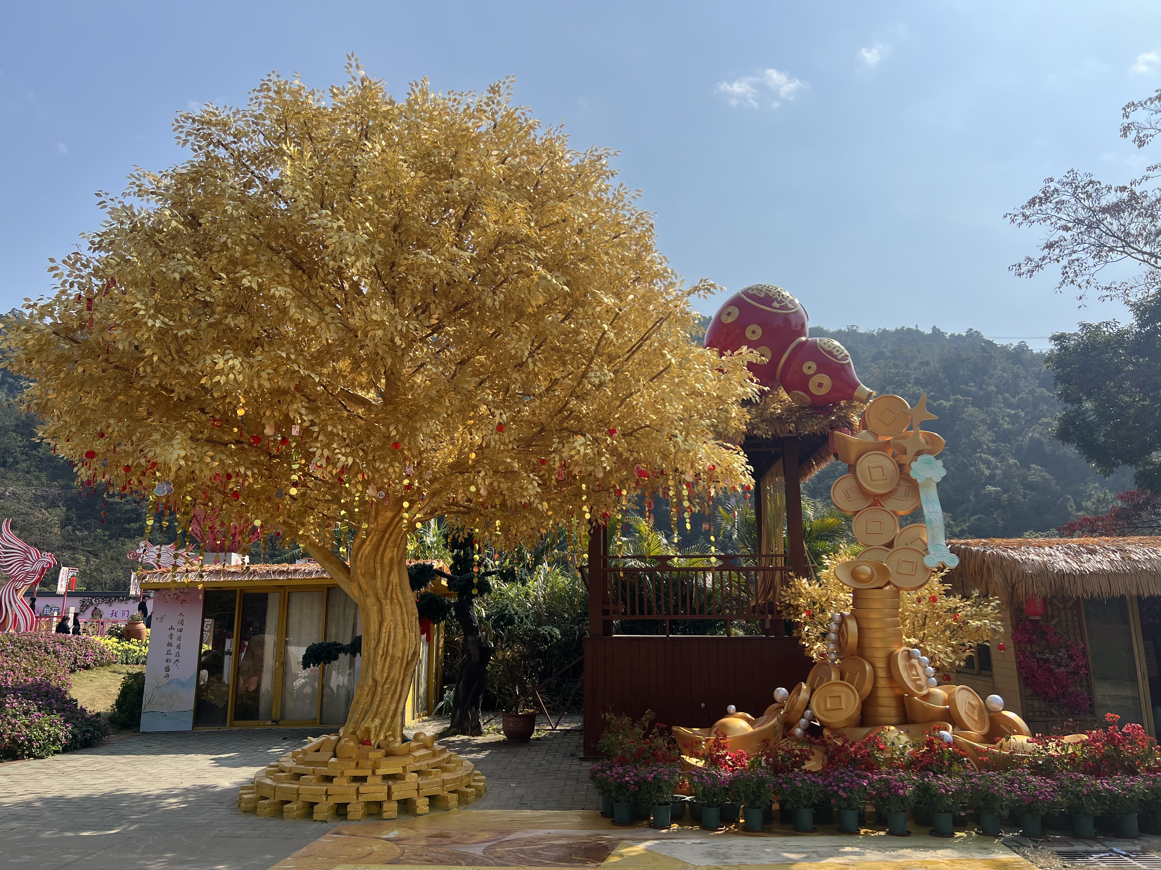 巨型鎏金发财树尤为震撼