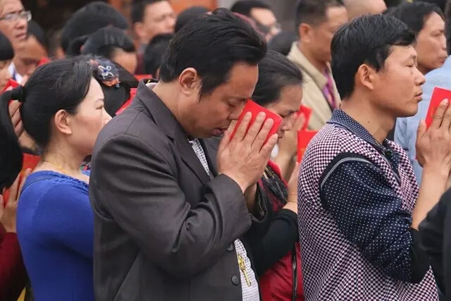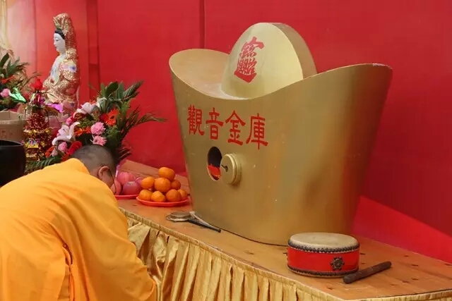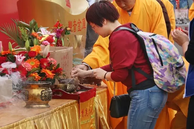游客信众虔心祈福,恭迎观音菩萨打开金库