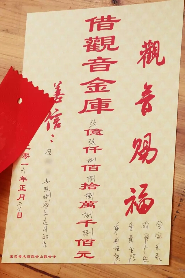 风调雨顺后,可别忘记再到观音寺将财米包和借据带来焚化还愿,礼敬菩萨的功德哦!观音菩萨来者不拒,但大家要谨记:有借有还,借库之后,到了年尾,一定要归还,否则,下次再借库时就不再灵验了,还库后才能借新库。