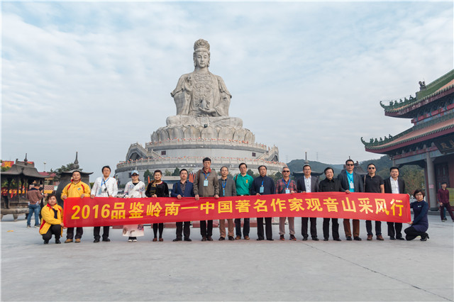 “品鉴岭南——中国著名作家广东行”活动,由省旅游局主办,《香港商报》承办,是我省文艺界重要的文化品牌推广活动。已邀请莫言在内的100多位中国文坛大家到广东旅游、采风和写作。观音山是闻名遐迩的岭南文化名山和佛教名山,也是中国南方最新崛起的祈福圣地。园区内峰峦叠嶂,林木苍翠,环境清幽,文化气息十分浓厚,是文人墨客向往的文化精神高地。至今,已有3000多位作家和诗人来过观音山参加文学论坛等学术交流活动,感受观音山这座岭南文化名山的秀美风光和人文魅力,也为观音山留下了无数传世名篇佳作。