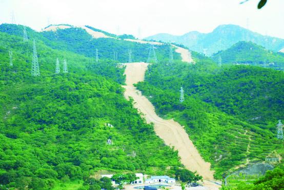 2011年年底,随着工程机械车推出长达2.5公里的管道线路,大面积的红色山体裸露出来,在周边依然葱郁森林的对比下,显得极为刺眼。