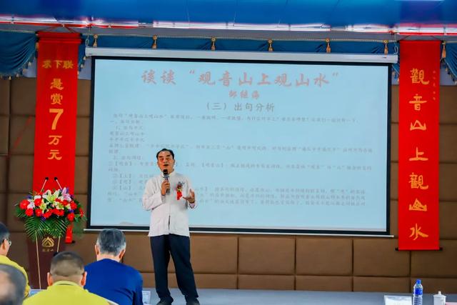 中国楹联学会副会长、广东楹联学会会长,“观音山上观山水”出句人邹继海先生将与众位楹联家一同与参会嘉宾针对“观音山上观山水”,进行分析和交流互动。在品析“观音山上观山水”之余,观音山景区还重磅推出了现场有奖征对句活动,广东楹联学会会长邹继海先生以“名山对对对名联”为下联出句,于2020年1月10日8:00至11日10:00,在景区门楼处现场接收投稿并且设立专项奖励,设金奖1名,奖金1万元,优秀奖10名,奖金各2000元。