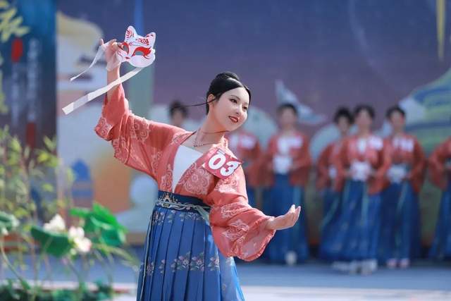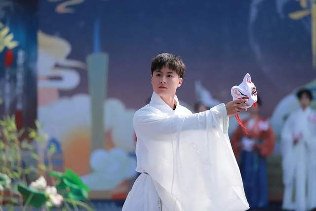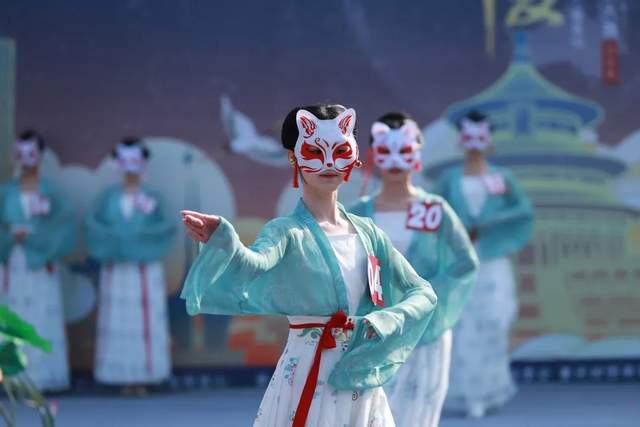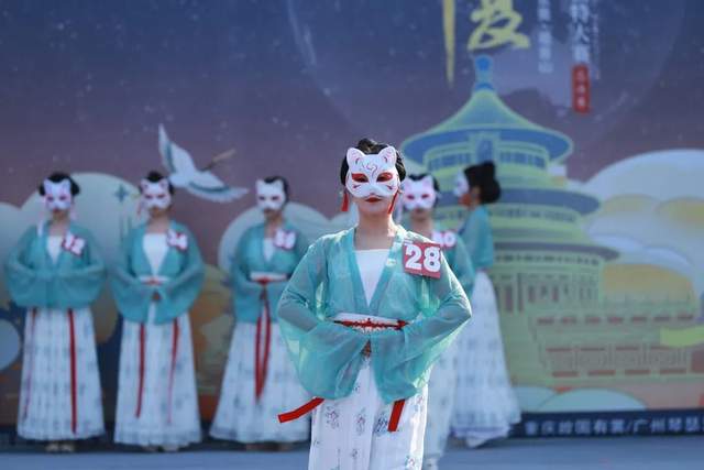 首先是仪态篇,选手穿着由大赛提供的同款汉服,极简丸子头,带面具上场,不加道具,不做定点动作,评委在没有任何干扰的情况下,专注选手的仪态、形体、步态。