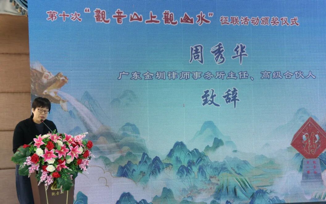 作为本次征联活动监督委员会成员之一,广东金圳律师事务所主任、高级合伙人周秀华女士表示,此次活动从征集到稿件的初评、复评、网络投票、终评的各个环节都做到了规则清晰、执行严谨,最大程度的保障了参赛者的公平与公正。同时,祝贺所有参赛者,是大家的才华,点亮了这场文化盛宴,同时也感谢主办方的信任,大家的共同参与,共同努力,成就了观音山征联文化盛事,弘扬了中华优秀传统文化。希望大家一如既往的关注观音山,支持中国传统文化事业的繁荣发展。