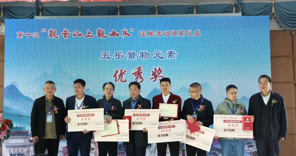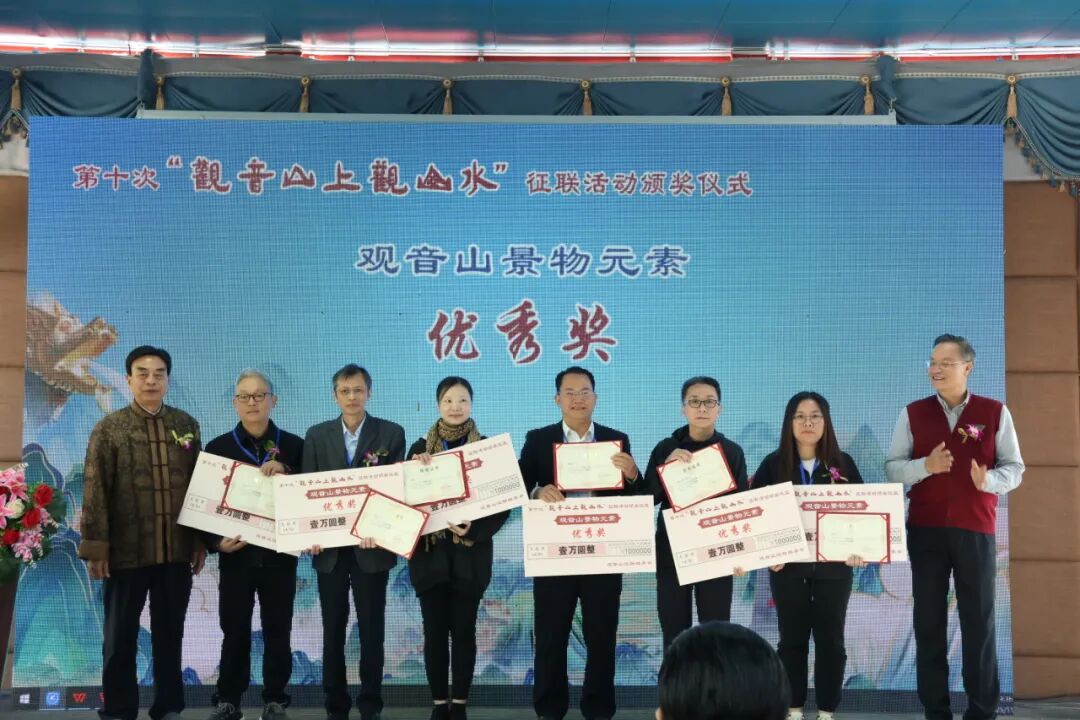 随后,第十次“观音山上观山水”征联活动颁奖仪式隆重举行,中国楹联学会副会长卢晓,中国楹联学会常务副会长陈伟明,为五岳景物元素优秀奖获奖代表颁奖。