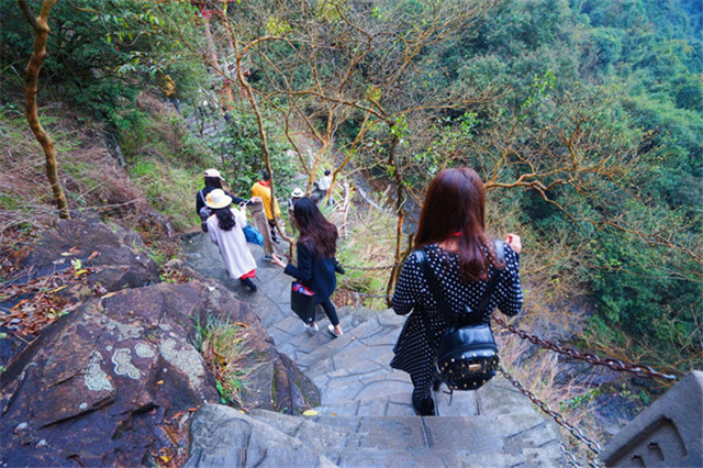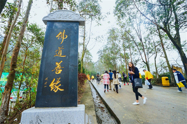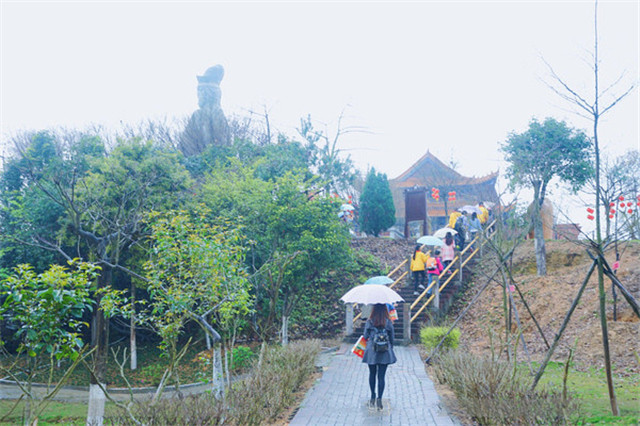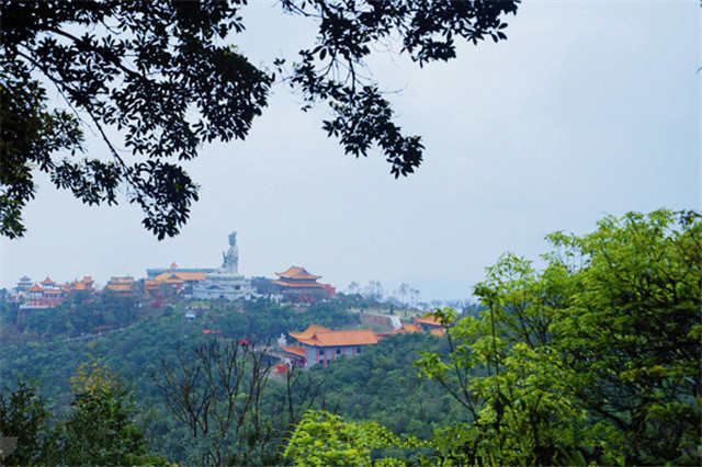作为一个设施完善的森林公园,景区自然也会照顾到不同需要的游客。从山下国际会展中心到山上观音广场,可以在深林氧吧中徒步拾级而上,流连于山中的草木;也可以乘坐环山而上的电瓶车,享受扑面而来的山间清风。而我们的选择,是两者兼有。