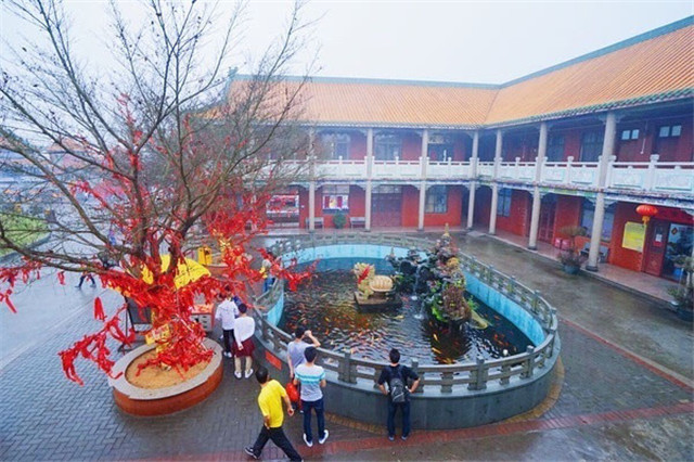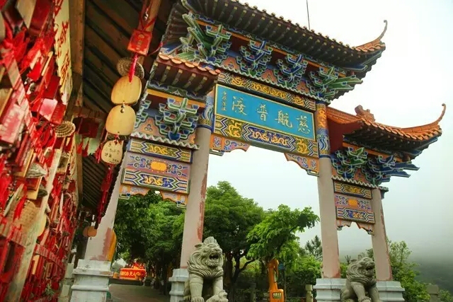 观音广场配有殿堂庙宇若干,如用于诵经的大悲殿、可供抄写经书的三圣堂、品尝正宗斋菜的斋堂等等。从步道上来,徒步6.8公里,到达时已是中午时分了。我们一行人早已饥肠辘辘。佛门清净地,诚信拜佛前,我们也该先诚心吃斋了,嘿嘿。