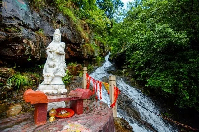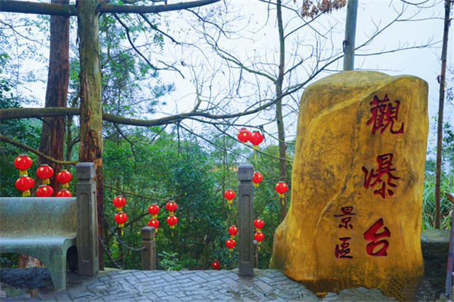 起初的山路台阶,落差较大,走了一会儿就气喘吁吁。还好有个观瀑台,欣赏着涓涓流水,也好奇着其他游客在亭子旁边的祈福树上写了什么愿望清单。