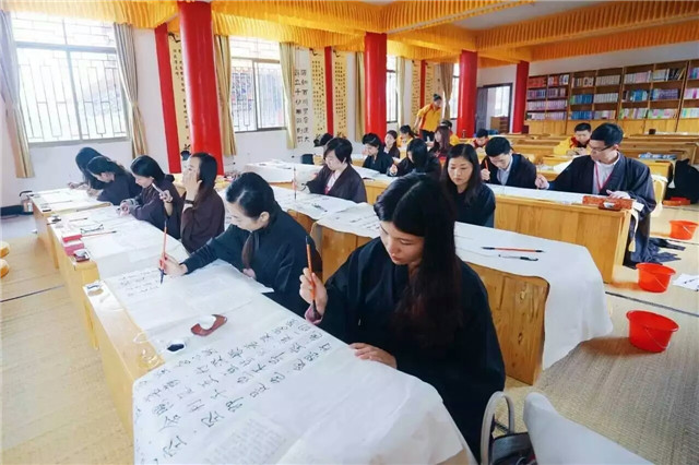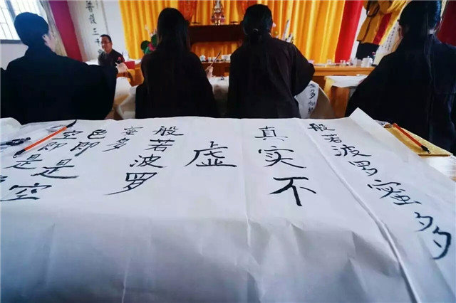 突然的一场大雨,让我们始料不及。倒也好,我们干脆躲到了三圣堂里虔心抄写经书,也让这场雨一洗红尘。观音山景区的陈主任给我们讲经时说到,人所感到的不幸福,多来自于内心永不满足的贪念,并让我们抄写最喜欢的一句经文。我一笔一划,抄写了《般若波罗蜜心经》中的一句——真实不虚。字不在美,心静则安。