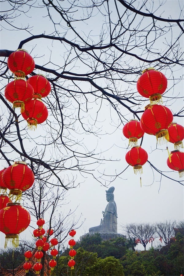 攀山涉水,总算到了观音广场。观音广场是观音山名符其实的地标,也是目前广东地区最大的佛教广场。十八罗汉像排列在花岗岩观音圣像的左右,观音像的正前方是一排排的特大香炉,香火鼎盛,善男信女诚信拜佛。山不在高,有仙则灵,当全球最大的花岗岩观音像被雨雾笼罩,像是隔绝了尘世的纷扰。