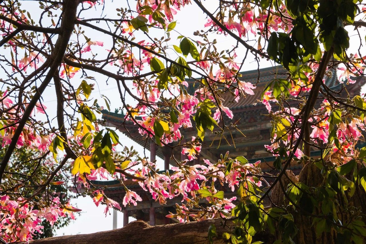 晴空万里,青山远黛,迎着淡然的轻风,一朵朵的木棉花在草绿间雀跃,妆点着禅意空灵的观音山,明朗极了。
